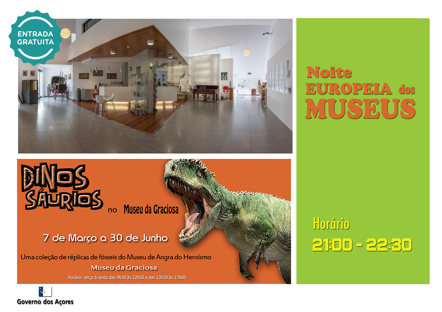 A Noite Europeia será comemorada pelo Museu da Graciosa com visitas comentadas à exposição "Os dinossáurios regressam ao Museu da Graciosa".