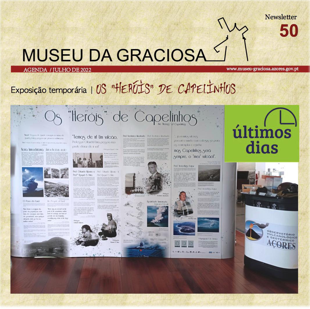 From the 15th to the 29th of July 2002, the exhibition Os Heróis de Capelinhos, a production of the Azores Volcanological and Geothermal Observatory (OVGA), which aims to commemorate the 65th anniversary of the eruption of the Azores, will be on display at the Graciosa Museum. Capelinhos, honoring the heroes associated with it.