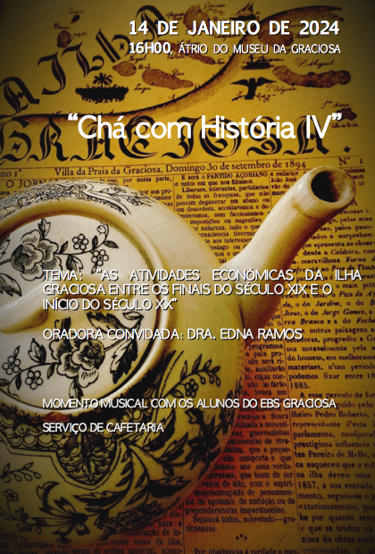 Chá com história IV, 14 de Janeiro de 2024, pelas 16h, no átrio do Museu da Graciosa.