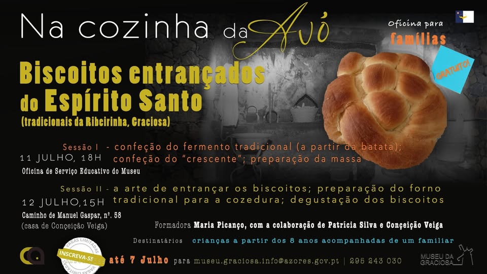 Com o intuito de divulgar uma tradição quase esquecida e proporcionar atividades enriquecedoras em família, o Museu promove uma oficina dedicada à confeção dos tradicionais biscoitos entrançados do Espírito. Trata-se de uma prática gastronómica ancestral típica da localidade da Ribeirinha.